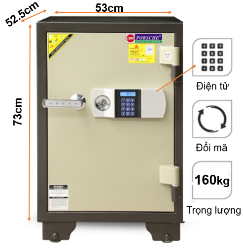 Két sắt PORSCHE KS160 điện tử được sản xuất theo công nghệ Hàn Quốc, không chỉ đảm bảo an toàn cho tài sản mà còn có màu sắc hợp phong thủy với nhiều ngôi nhà, là dòng sản phẩm két sắt hàn quốc được nhiều người tin dùng lựa chọn.