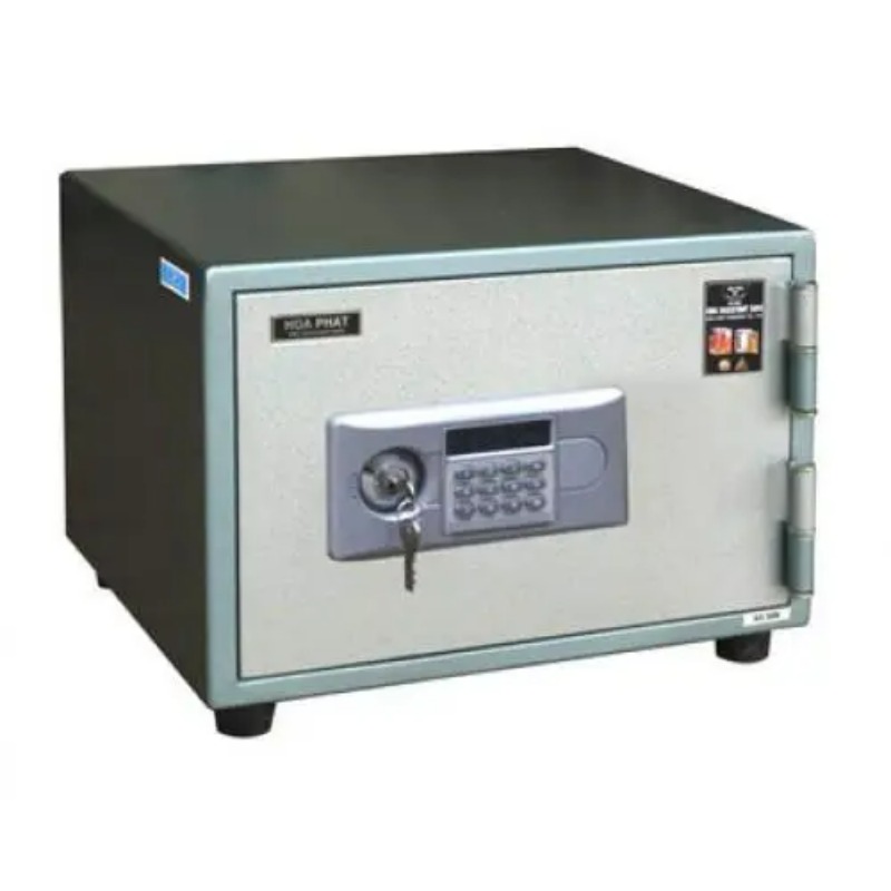 Két sắt giá rẻ chống cháy KS35-N : loại nằm gồm 01 khoá chìa + 01 khoá mã. Bên trong có 01 đợt cố định