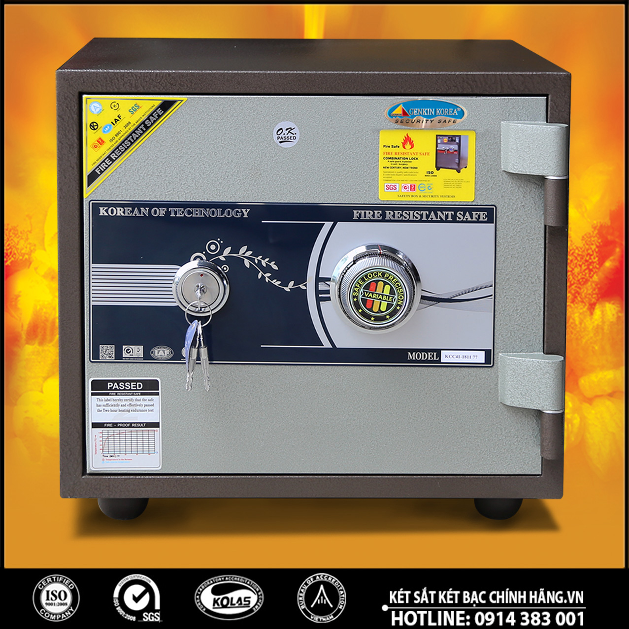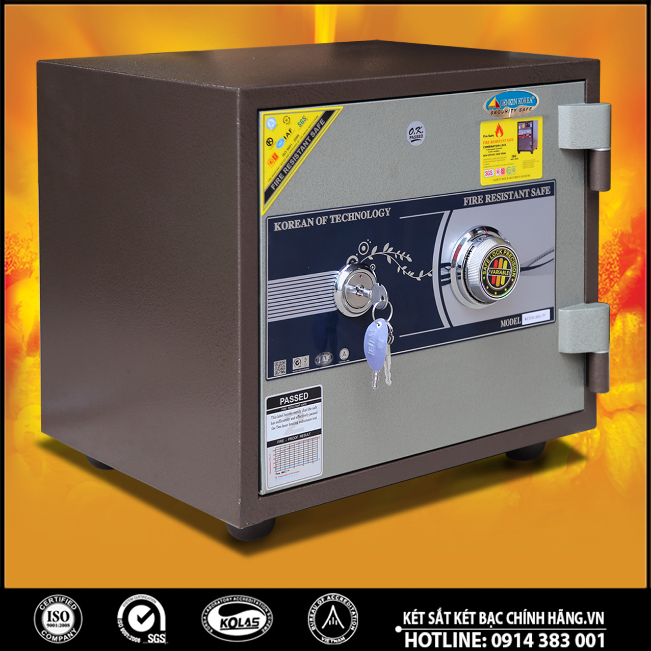 Két sắt GENKIN KOREA được sản xuất theo quy chuẩn quốc tế với công nghệ hiện đại bậc nhất hiện nay. Két sắt có khả năng chống cháy và chống phá cực kỳ tốt, đảm bảo an toàn với tài sản của chúng ta.