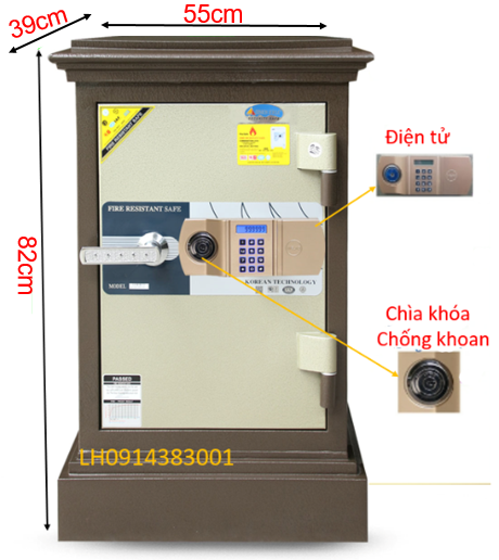 Thân két + cánh cửa đúc đặc nguyên khối chống cháy, chống phá.