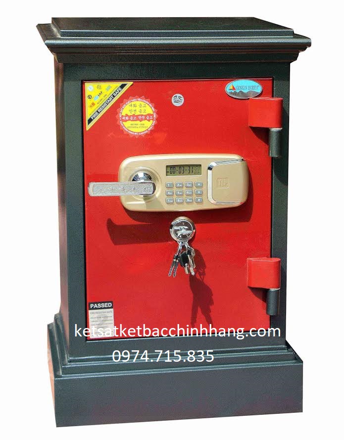 Thân két đúc đặc 100%, hèm cửa dạng bậc tam cấp tăng khả năng chống cháy, chống phá.2 bản lề ngoài, 04 chốt dẹt to an toàn trên cánh cửa tự động bật - ăn sâu vào thân két khi đóng cửa.