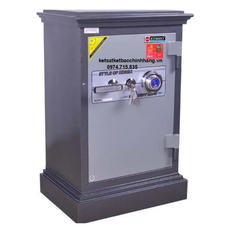 Tính năng: An toàn chống cháy, thân két đúc đặc 100%, hèm cửa dạng tam cấp giúp tăng khả năng chống cháy, chống phá, két có 8 chốt tự động ăn sâu vào trong lòng két.