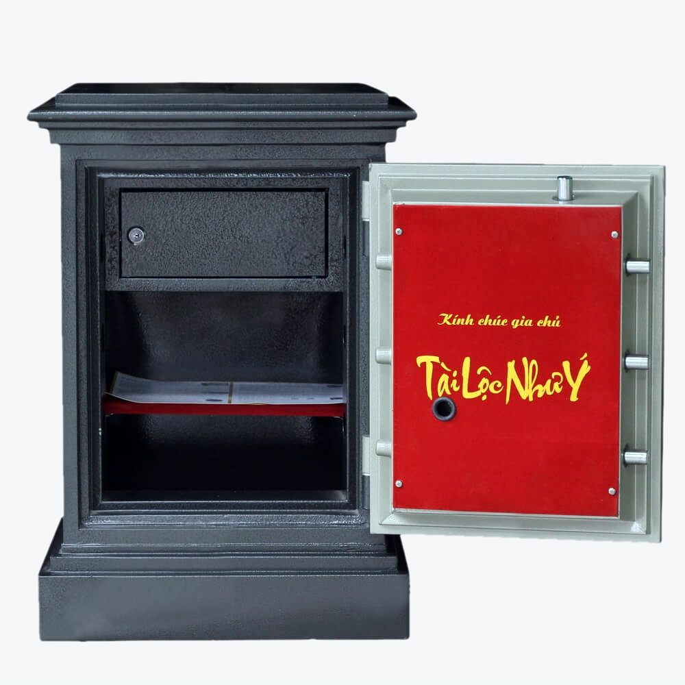 Tính năng: An toàn chống cháy, thân két đúc đặc 100%, hèm cửa dạng tam cấp giúp tăng khả năng chống cháy, chống phá, két có 8 chốt tự động ăn sâu vào trong lòng két.