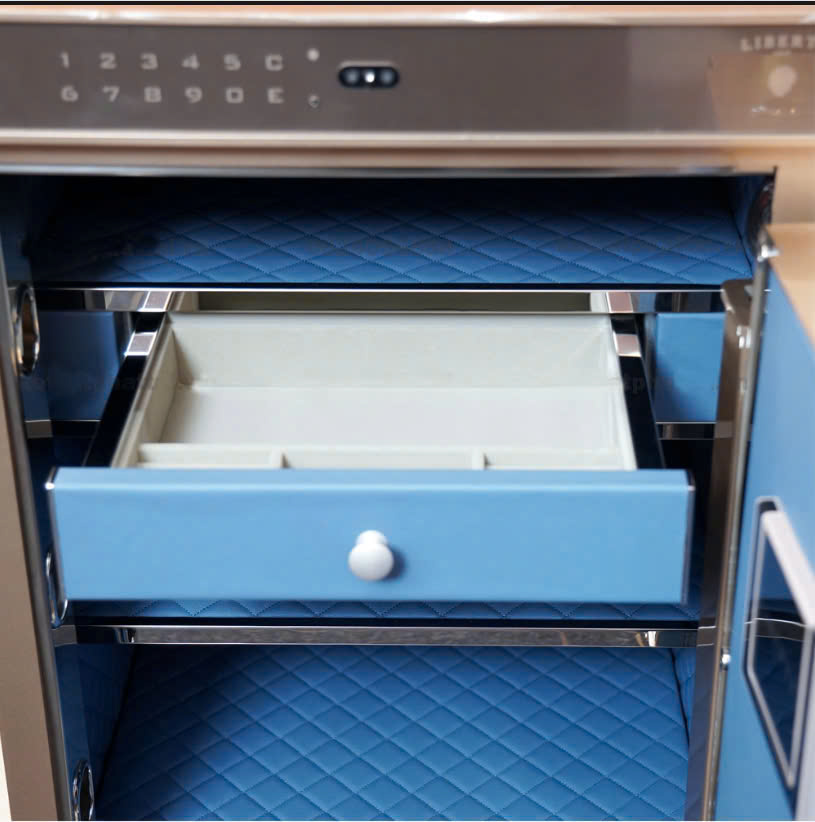 Với hệ thống khóa an toàn cao cấp và cấu trúc chắc chắn, két sắt Liberty đảm bảo an toàn tuyệt đối cho tài sản của bạn nhờ mở khoá bằng những phương pháp tiên tiến nhất: vân tay, mã số ngoài ra két còn được trang bị chìa khoá chống sao chép và chìa khẩn cấp khi gặp sự cố, đồng thời có thể mở qua điện thoại thông minh và khả năng báo trộm qua điện thoại cao cấp, dung lượng vân tay có thể cài đặt lên tới 30 vân tay vô cùng thoải mái