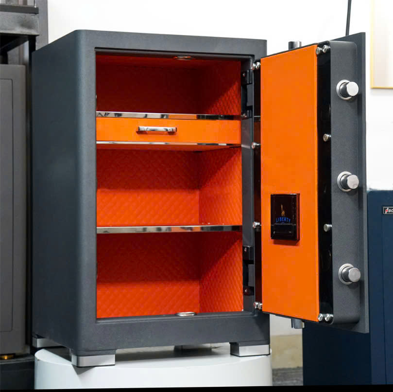 Với hệ thống khóa an toàn cao cấp và cấu trúc chắc chắn, két sắt Liberty đảm bảo an toàn tuyệt đối cho tài sản của bạn nhờ mở khoá bằng những phương pháp tiên tiến nhất: vân tay, mã số ngoài ra két còn được trang bị chìa khoá chống sao chép và chìa khẩn cấp khi gặp sự cố, đồng thời có thể mở qua điện thoại thông minh và khả năng báo trộm qua điện thoại cao cấp, dung lượng vân tay có thể cài đặt lên tới 30 vân tay vô cùng thoải mái