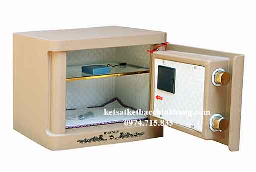 - Két có chốt văn ren khi khóa két vào. Bên trong có 1 ngăn bí mật có mã riêng.