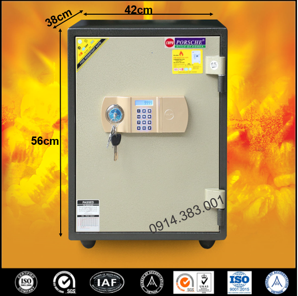 Két sắt PORSCHE được sản xuất theo quy chuẩn quốc tế với công nghệ hiện đại bậc nhất hiện nay. Két sắt có khả năng chống cháy và chống phá cực kỳ tốt, đảm bảo an toàn với tài sản của chúng ta.