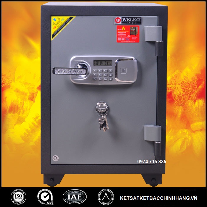 Tính năng: An toàn chống cháy, thân két đúc đặc 100%, hèm cửa dạng tam cấp giúp tăng khả năng chống cháy, chống phá. Két sắt có 6 chốt to tự động ăn sâu vào lòng két.