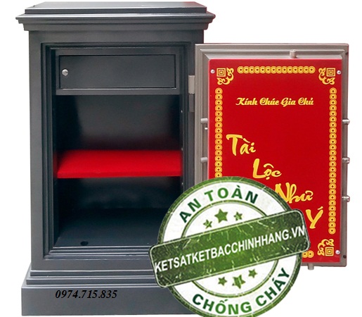 Thân két đúc đặc 100%, hèm cửa dạng bậc tam cấp tăng khả năng chống cháy, chống phá.2 bản lề ngoài, 04 chốt dẹt to an toàn trên cánh cửa tự động bật - ăn sâu vào thân két khi đóng cửa.
